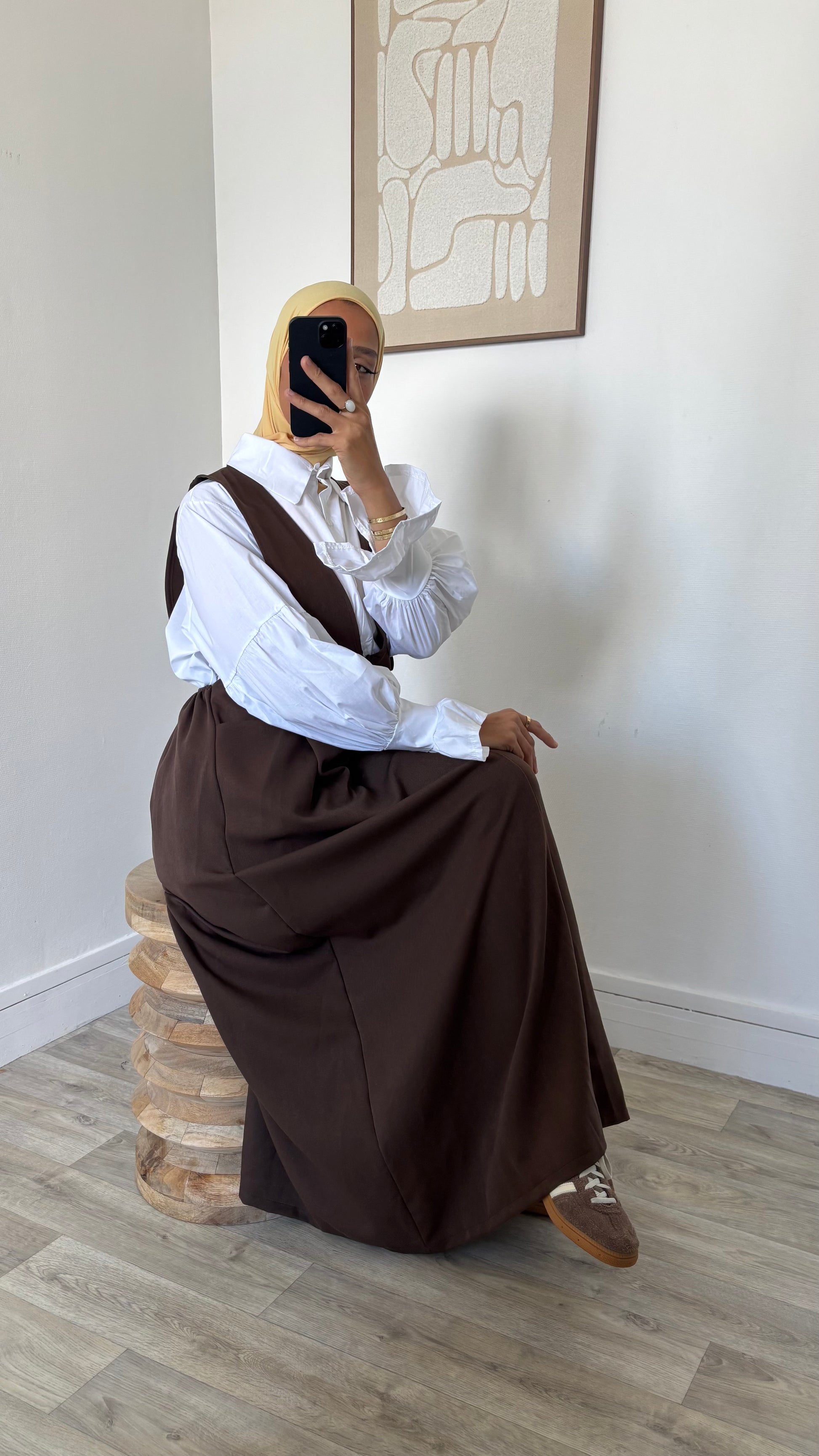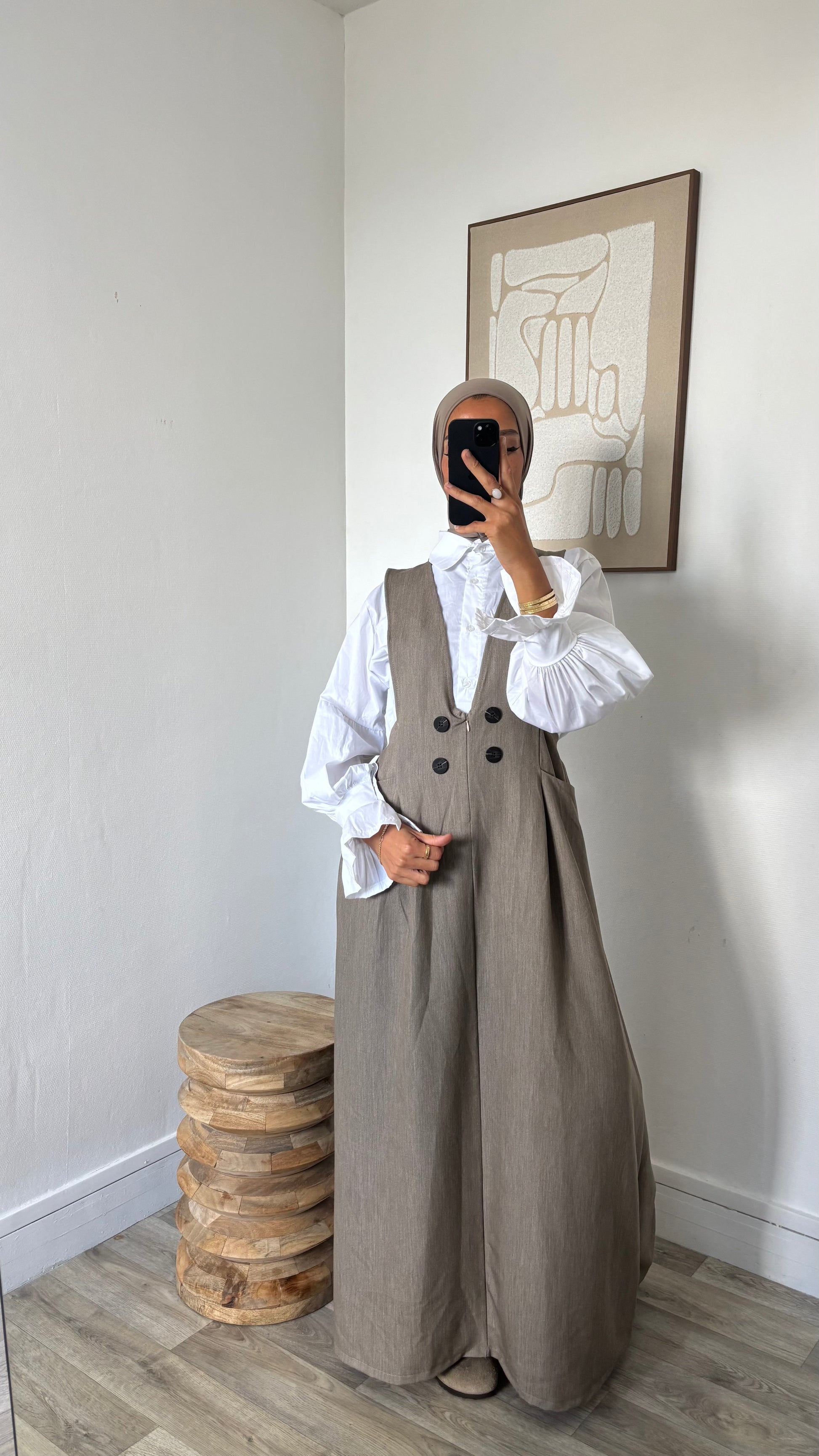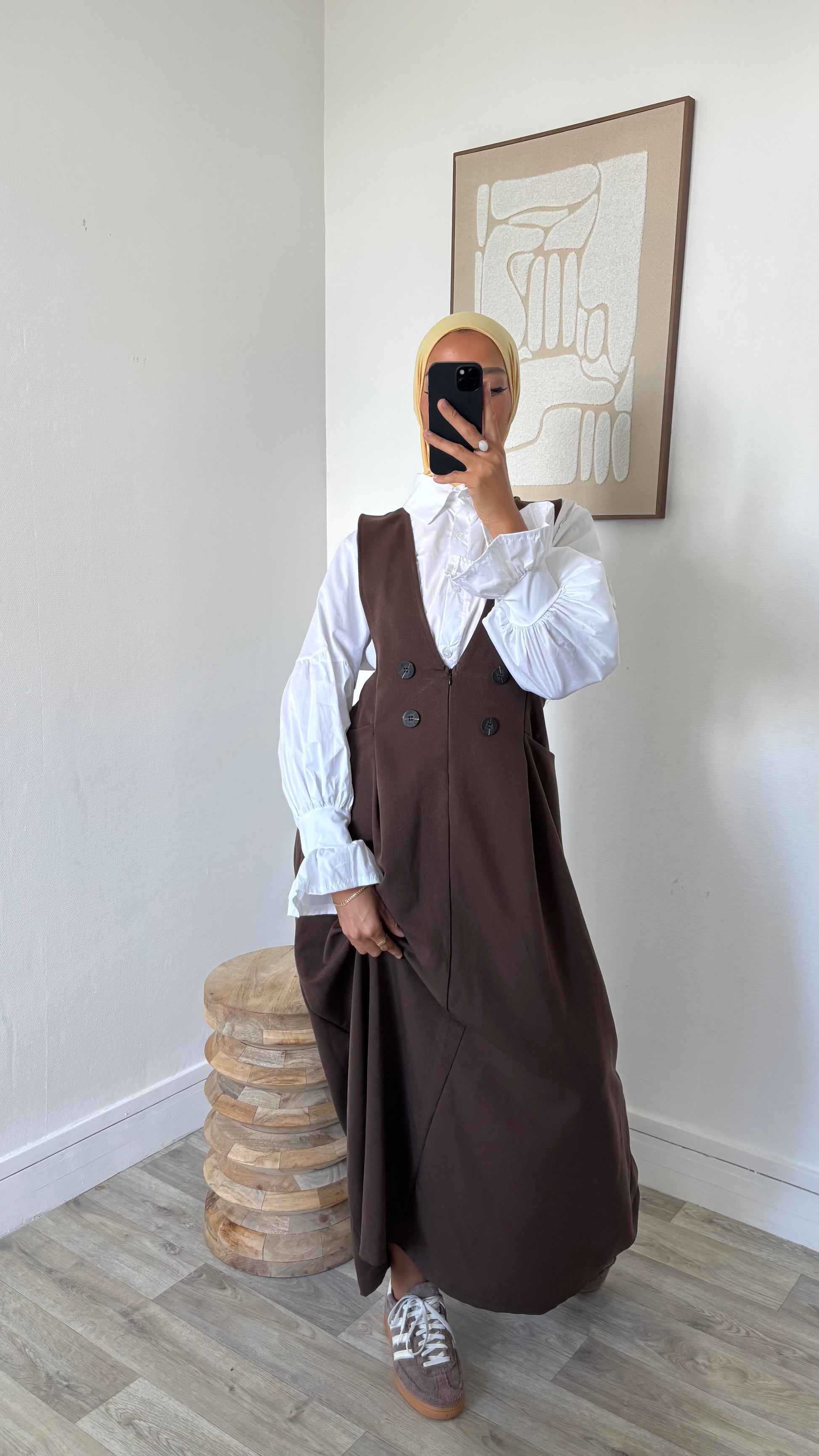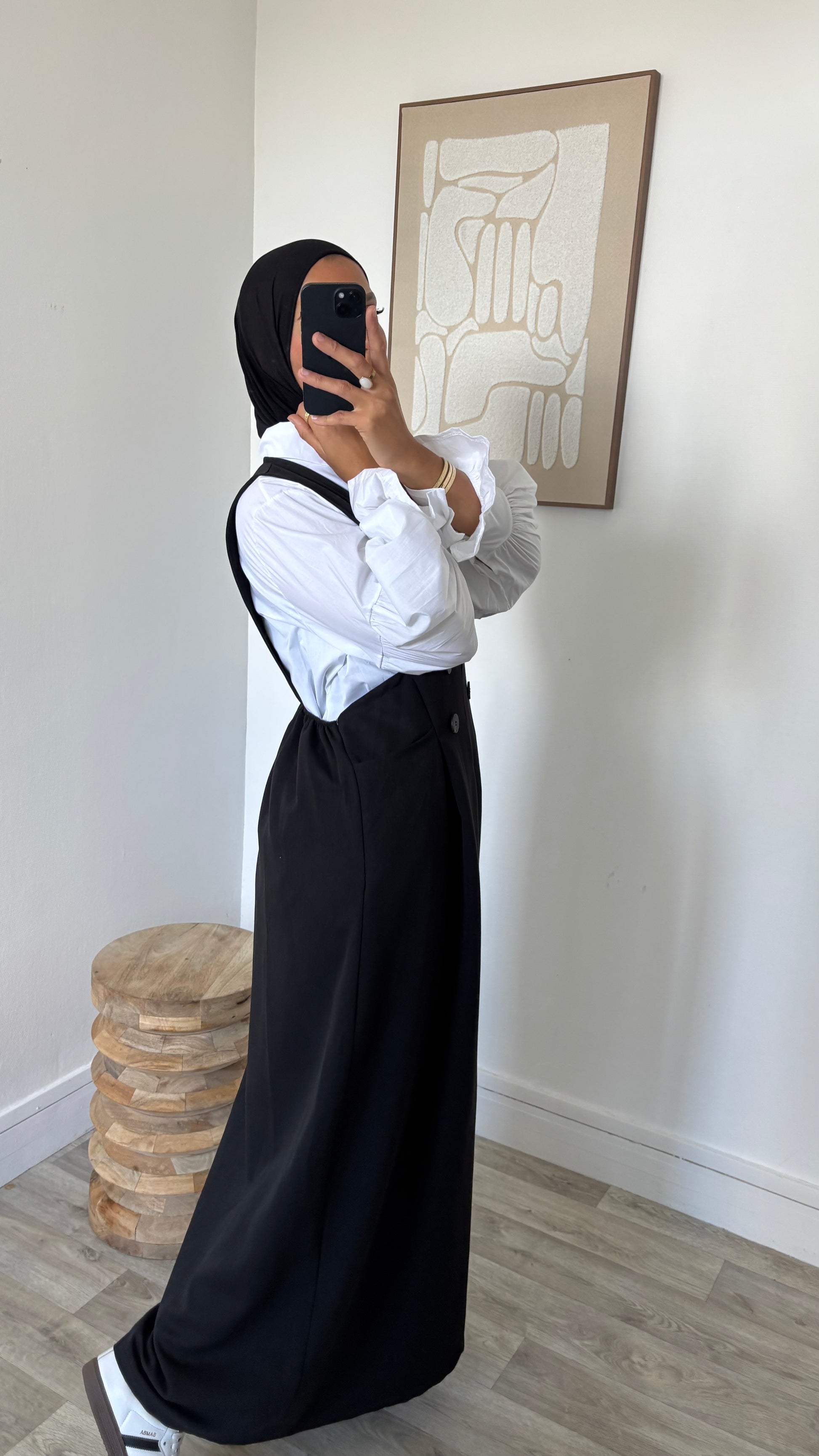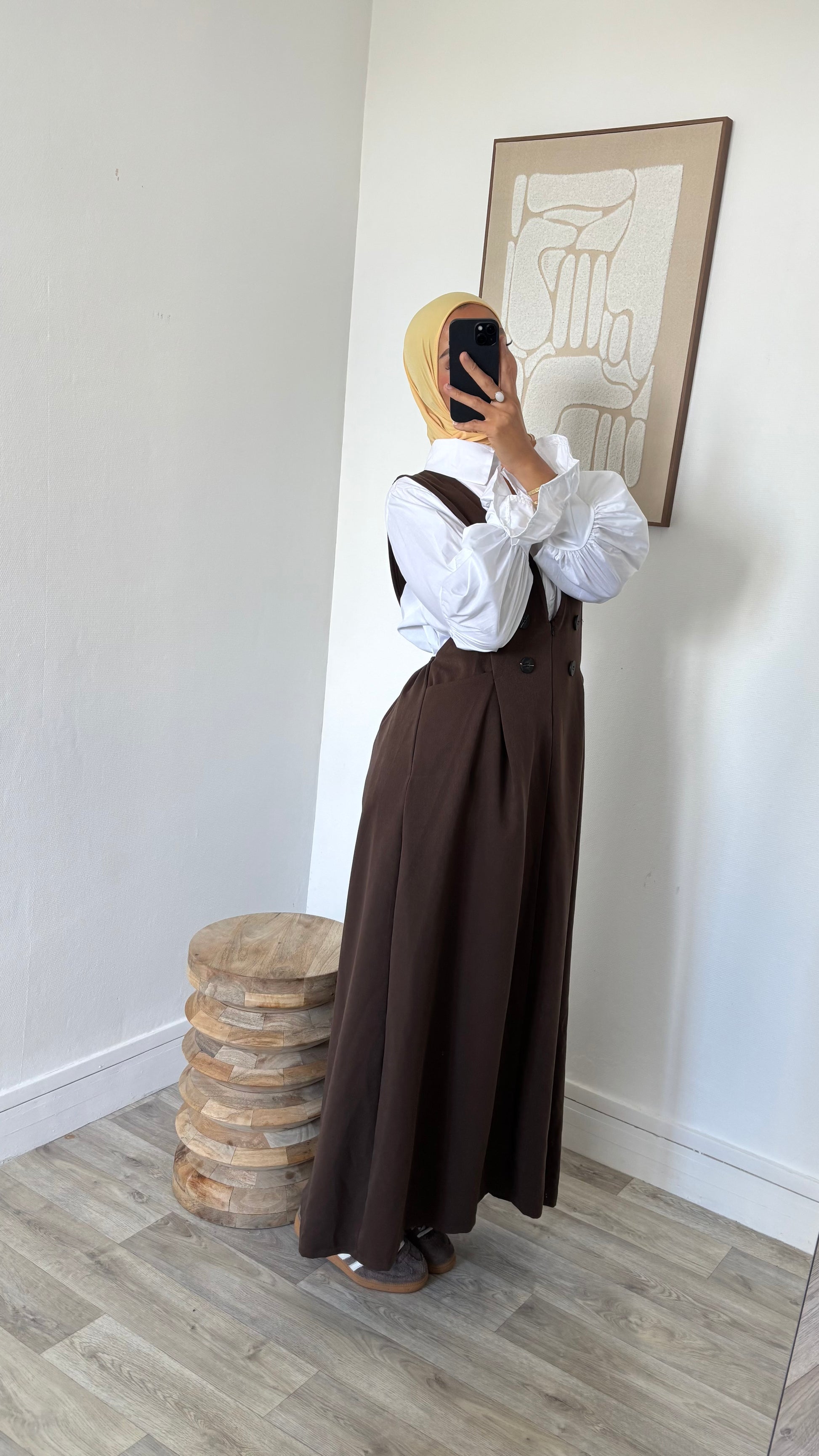 Chemise longue blanche + robe salopette
