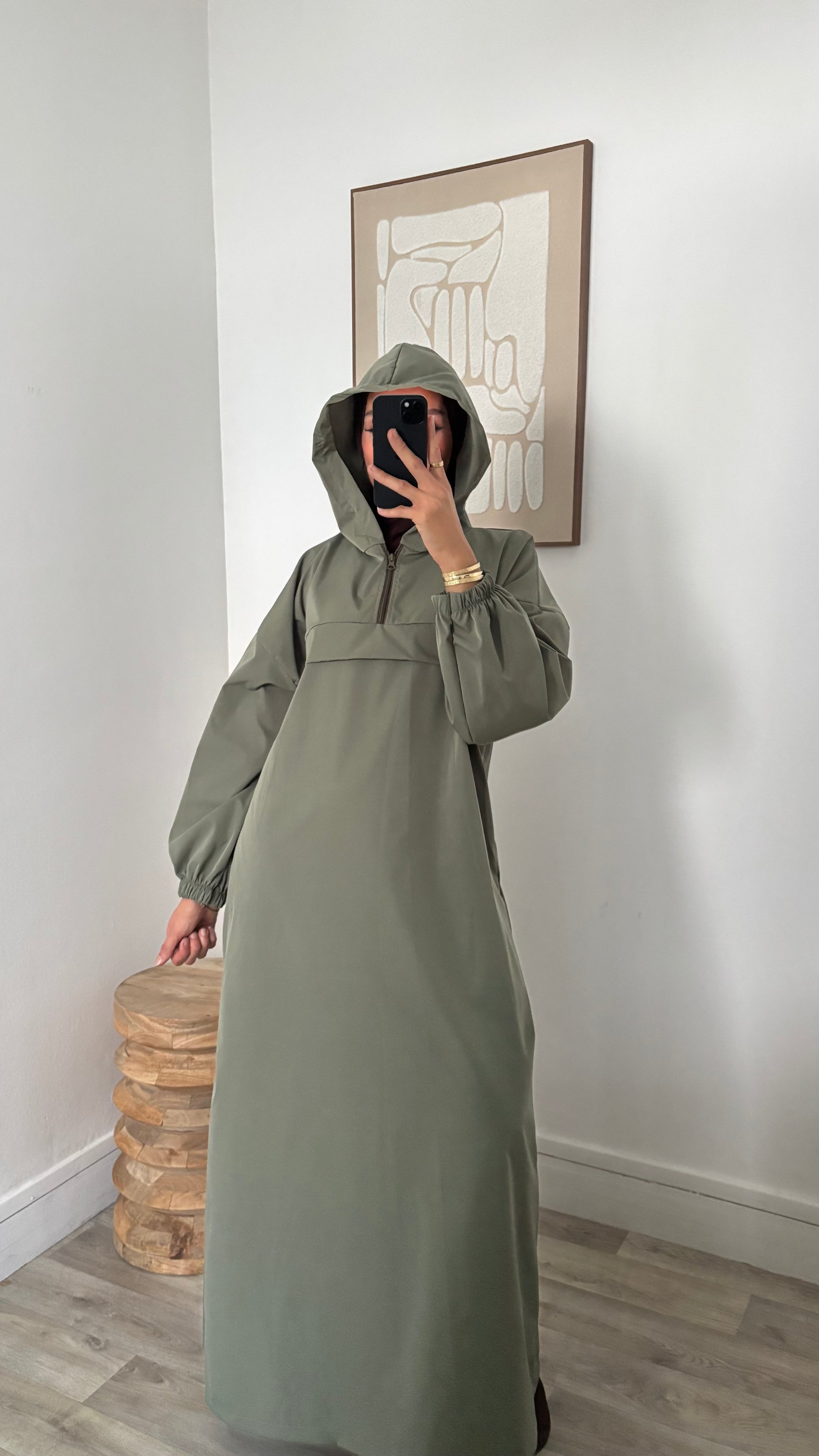 Long imperméable à capuche - Fermeture col zippée