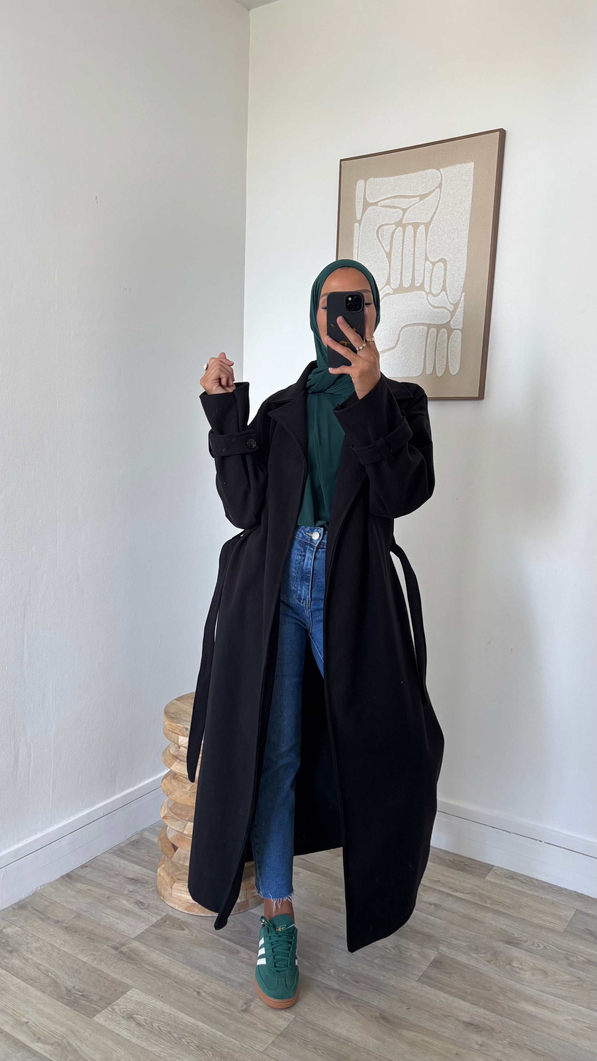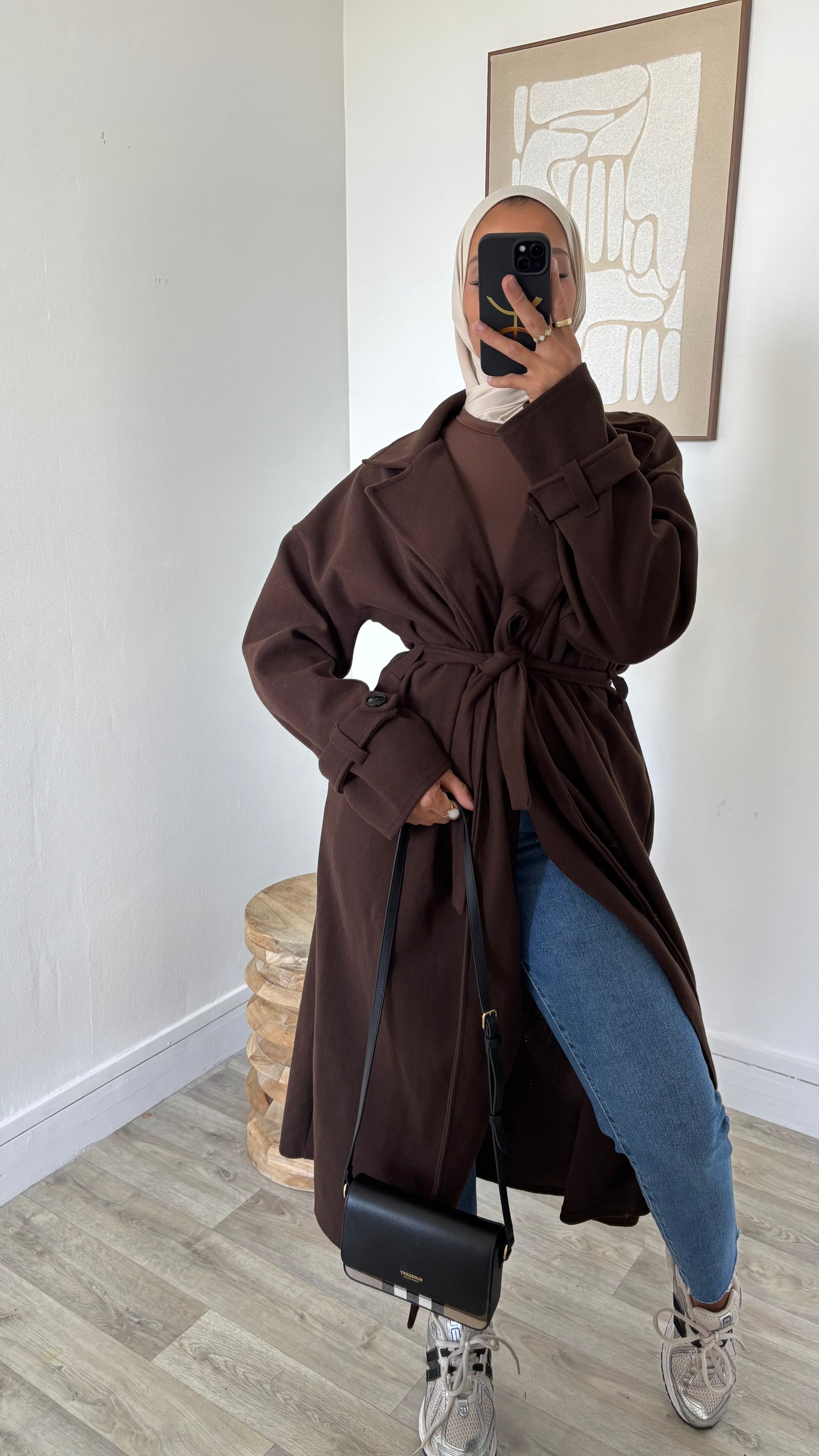 Manteau long à nouer sangle de manches